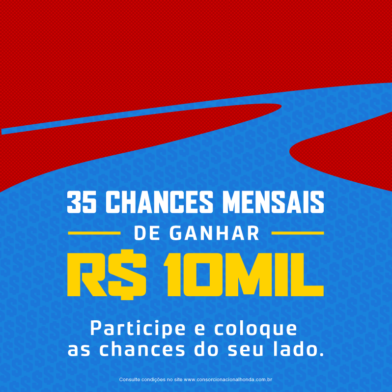 Participe da promoção “Muito Mais Chances Pra Você” do Consórcio Honda e concorra a R$10 mil todo mês. São 280 prêmios!