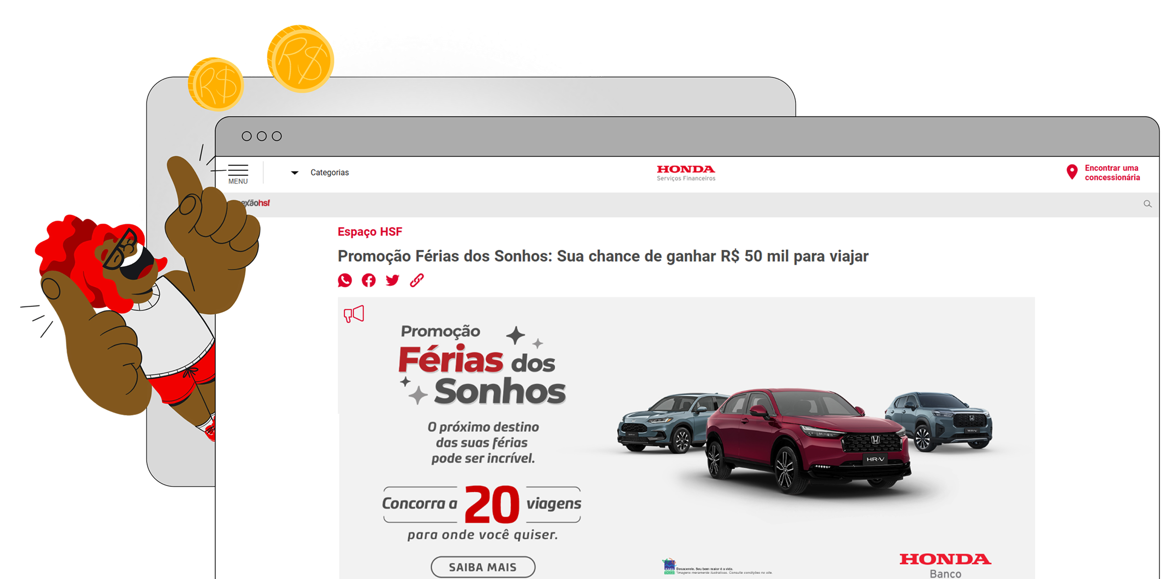 Quem participa: Clientes que adquirirem um Consórcio, Financiamento ou Seguro de automóveis com a Honda Serviços Financeiros até o fim de março/26.